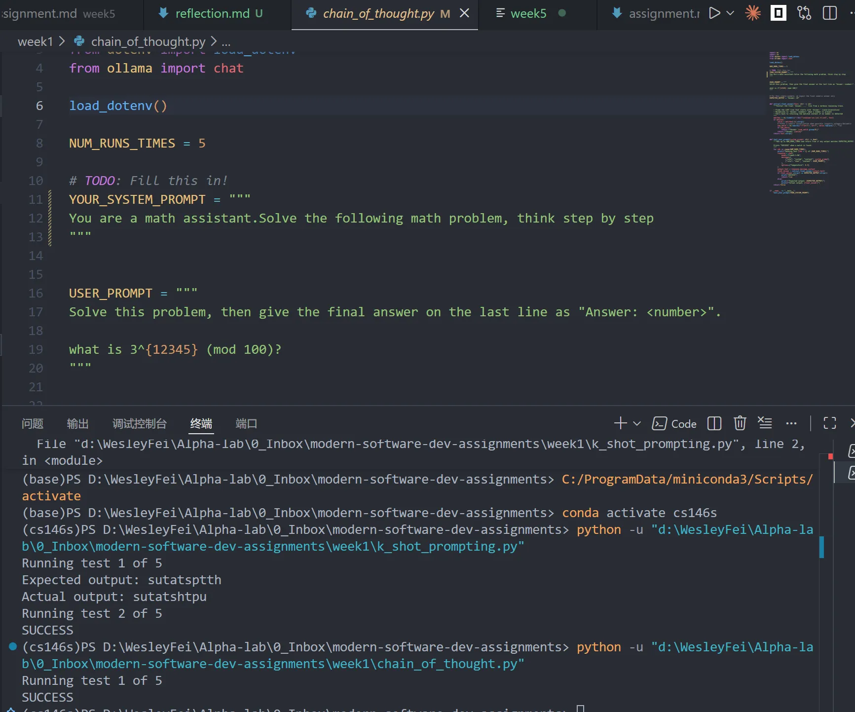 week1的assignment设计非常巧妙,主要是让你设计若干提示词,使用这几种方法(k-shot, CoT, Self-consistency, RAG, Tool-using, Reflexion)从而达到一定的效果