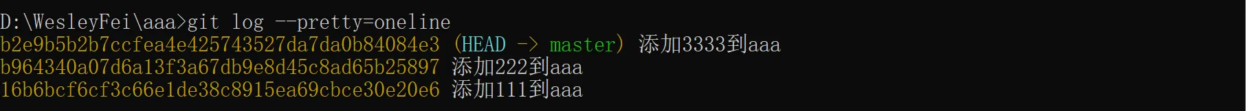 可以看到我们现在的HEAD指向的是master的“添加3333到aaa”号版本,我们有的时候想要回退到上一个版本,那么就可以使用