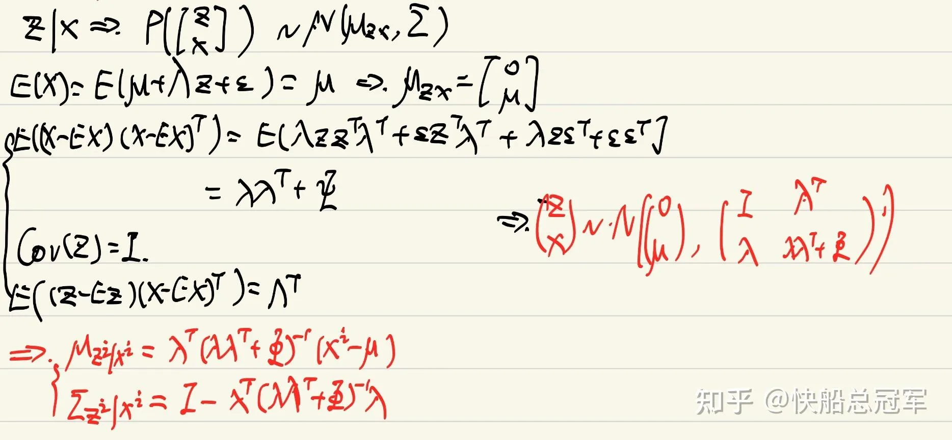 - 数据与标签成线性关系 x=μ+λz+ϵ ,噪声 ϵ ~ N(0,Φ)