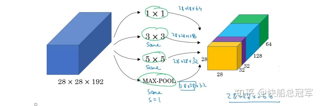 于是google net使用若干个不同的这样的inception模块并组合起来,发现最后的效果非常好。